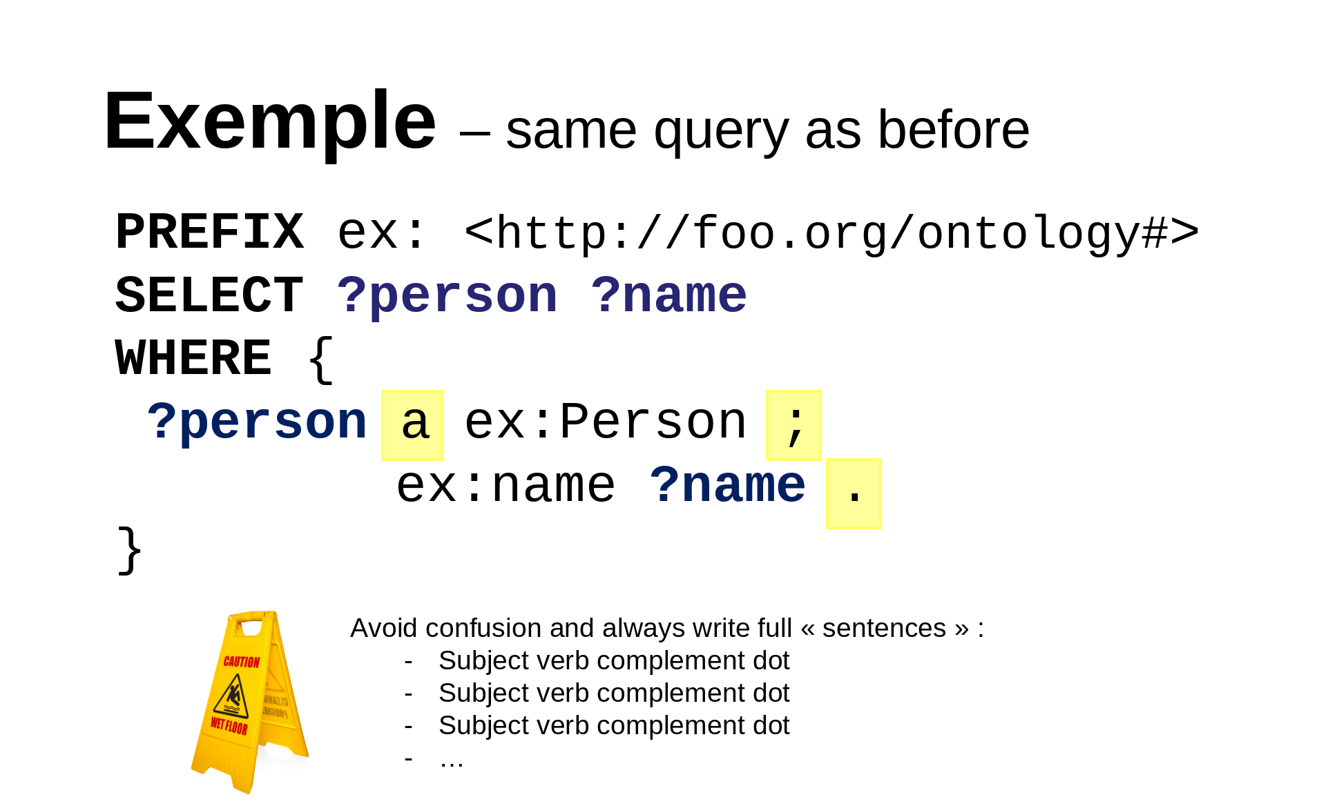 In 2022, I decided to release under creative commons license a complete SPARQL training slidedeck, in English, of more than 130 slides, including methodological tips and example queries on DBPedia.